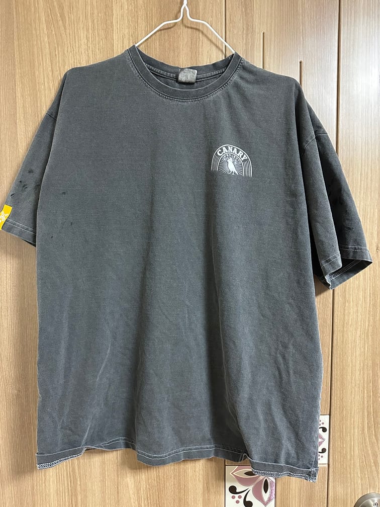 회색 거친 재질에 헬멧을 쓴 카나리아와 반원형으로 'CANARY PROJECT'라는 로고가 왼쪽 가슴에 적힌 티셔츠. 뒷면에는 W.F.C.A.라는 이니셜과 함께 눈, 지구본, 말뚝을 모티브로 한 마크가 그려져 있다.
