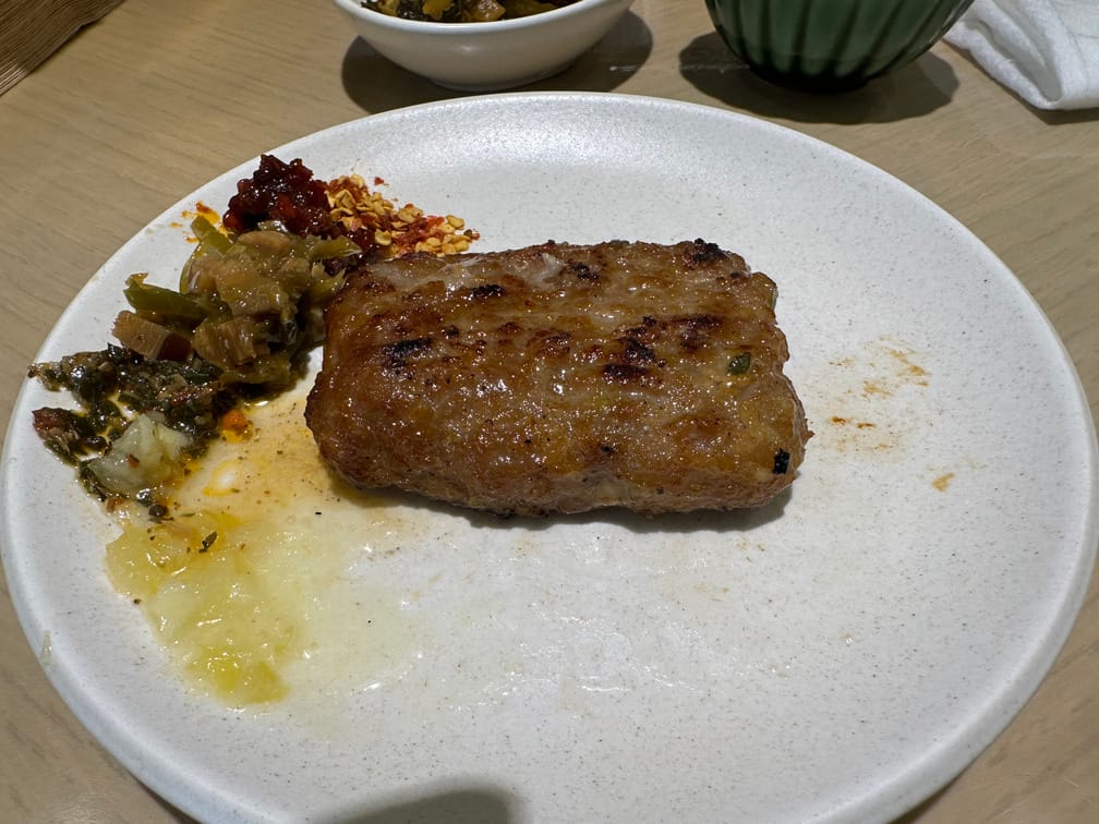 돼지고기 함반은 추천되는 소스들이 모두 매운 계열이라, 기름진 느낌이라고 생각하시나? 싶습니다. 저는 그런 부분은 좀 둔감해서… 한 번에 한 조각식 잘라서 여섯 조각으로 먹는 게 재미있습니다.