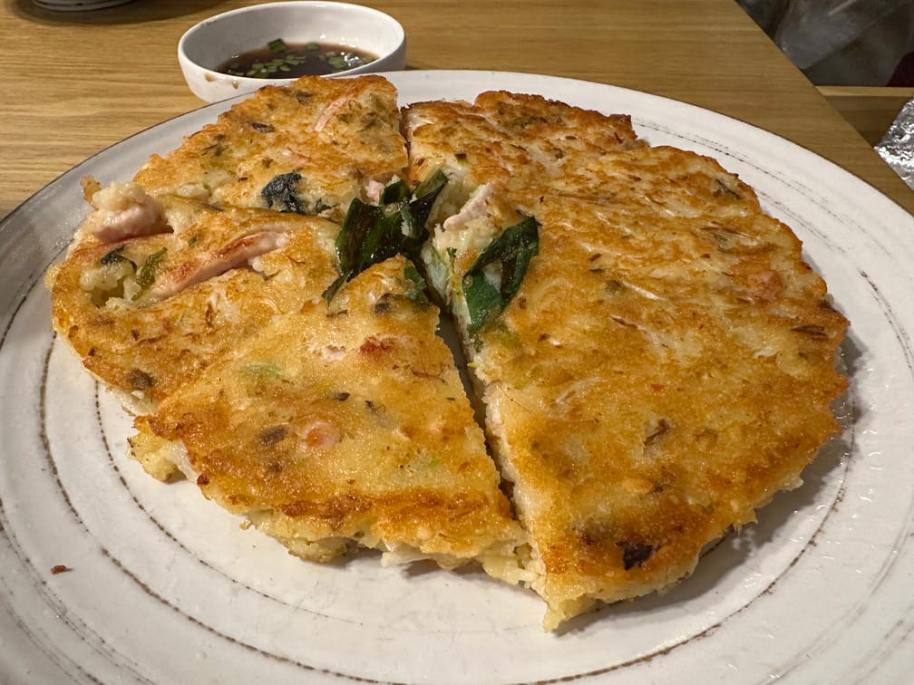 만두가 다 떨어졌다고 해서 만두는 시키지 못하고 빈대떡만 시켰는데, 재료들이 재미있었습니다. 대파, 오징어, 숙주… 말고도 이것저것 들어있었는데, 잘 기억이 나지 않네요. 시원하고 감칠맛 있는 국물에 기름진 부침개. 언제나 즐거운 조합입니다.