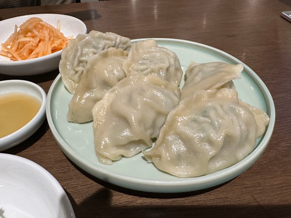 만두는 평양냉면집에서 기대하는 것보다 좀 더 감칠맛이 있는 고기 만두인데, 소 내용물이 튼실해서 만족스러웠습니다. 육즙이 진하게 배어나오고, 만두용으로 함께 나온 간장 기반 소스도 잘 어울렸습니다.